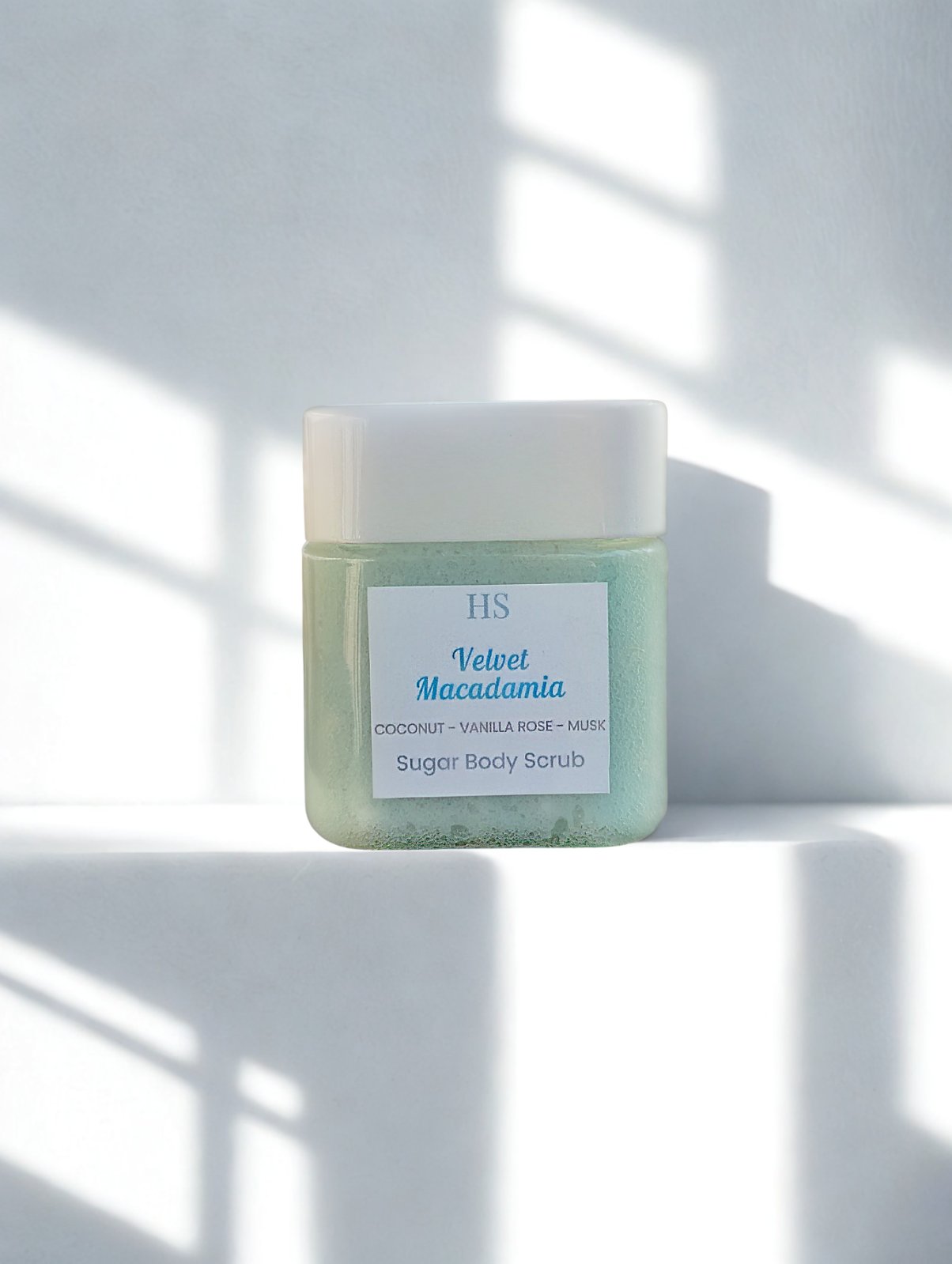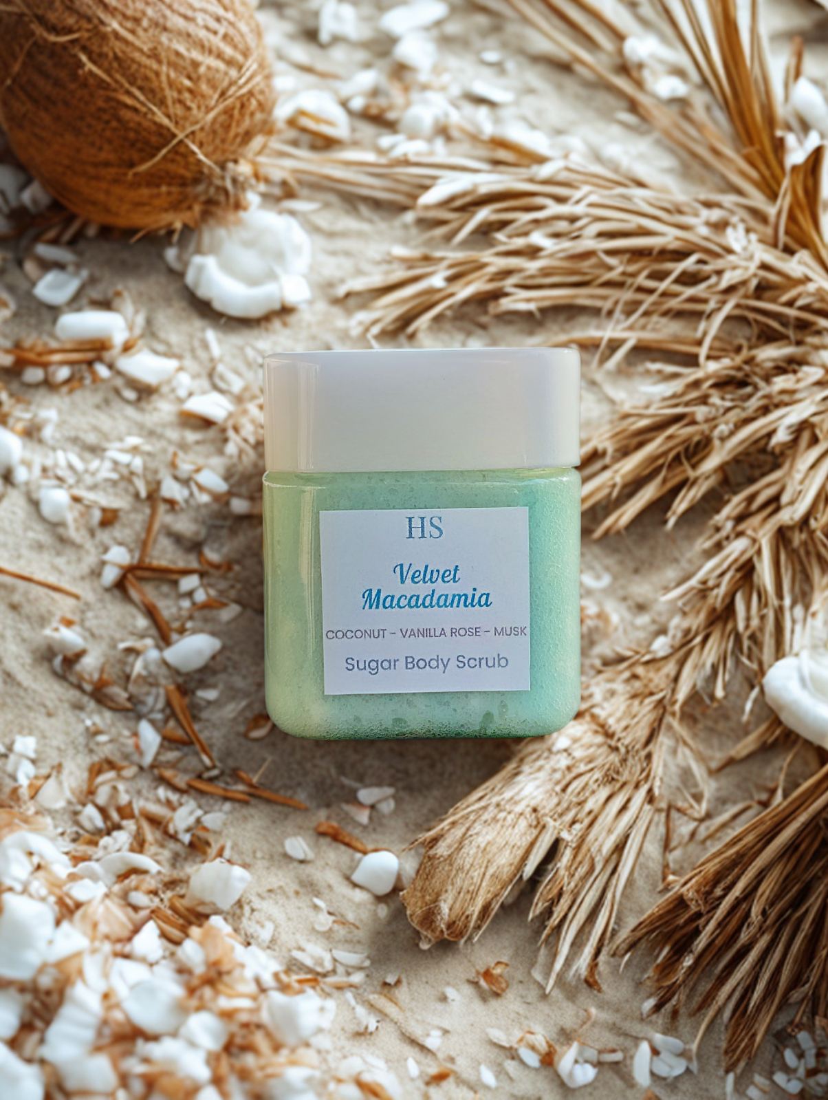 Αναζωογόνησε την επιδερμίδα σου με το Velvet Macadamia Sugar Body Scrub, ένα απαλό απολεπιστικό σώματος που απομακρύνει φυσικά τα νεκρά κύτταρα και αφήνει το δέρμα λείο και ανανεωμένο.